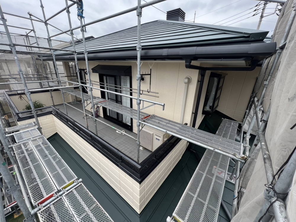 川越のお客様です。屋根葺き替えと雨樋交換工事になります。