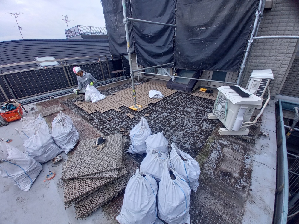 三世帯住宅のお客様で塩ビシートの貼り替えになります。