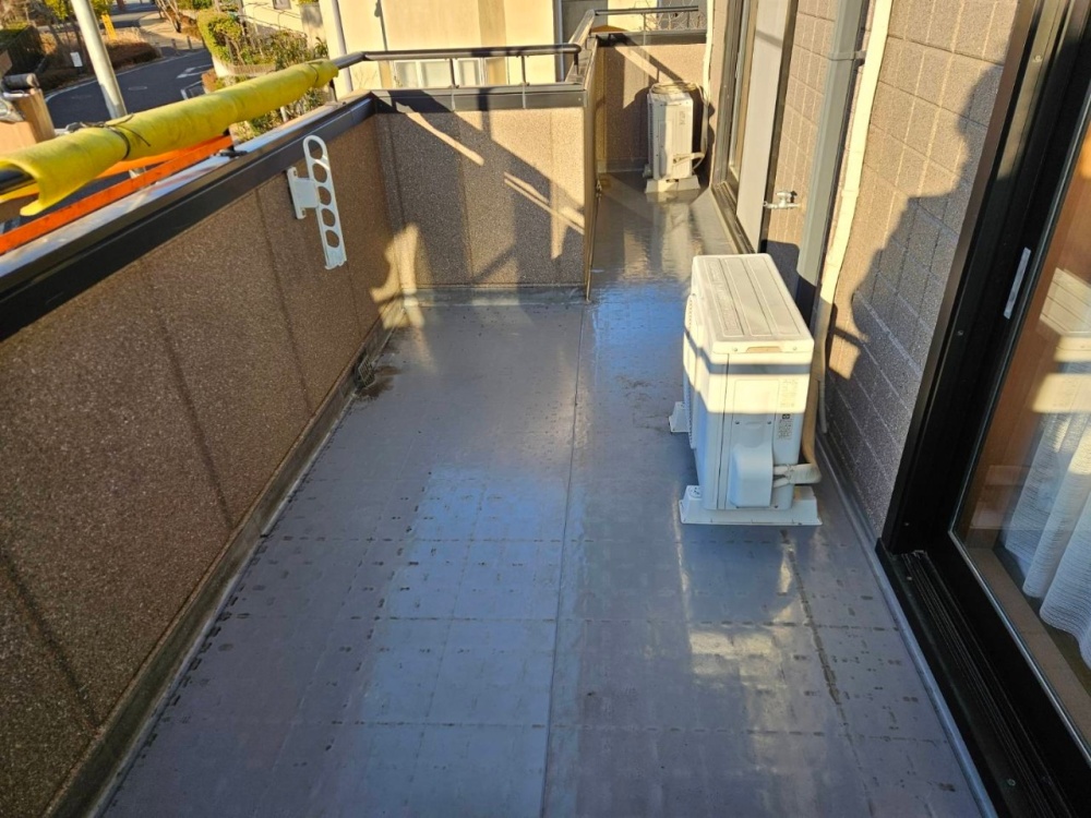稲城のお客様になります。ベランダ塩ビシート防水工事になります。
