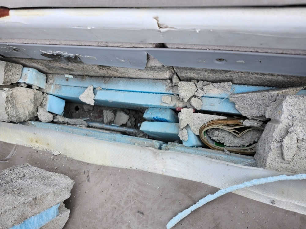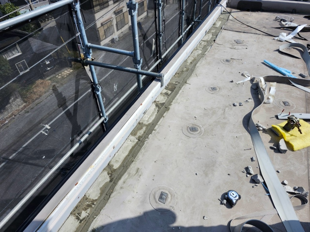 ご近所の防水屋さんが数年前に施工し直ぐに雨漏り発生し、今回はへーベルハウス純正施工・純正シートで